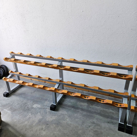ElbeSport Kurzhantelsatz aus Guss von 2,5 bis 60kg in 2,5kg Stufen ( 24 Paare ) Oldschool, INKLUSIVE Kurzhantelablagen, gebraucht - mit Gebrauchsspuren