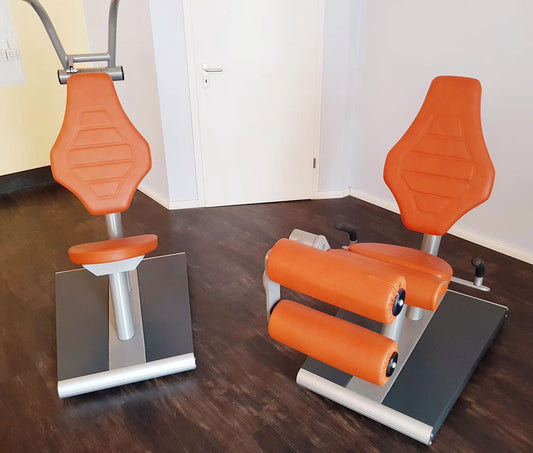 Dynamed Reha Grundausstattung, gebraucht, Gestelle silber, Polster 2-farbig gelb/ rot