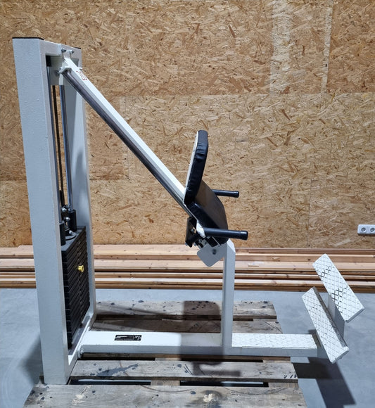 Gym80 Gluteusmaschine stehend, Glute Raiser, Pomaschine, Oldschool Bodybuilding Kraftgerät - Edition oder Classic Line, Rahmen Weiß, gebraucht mit Gebrauchsspuren