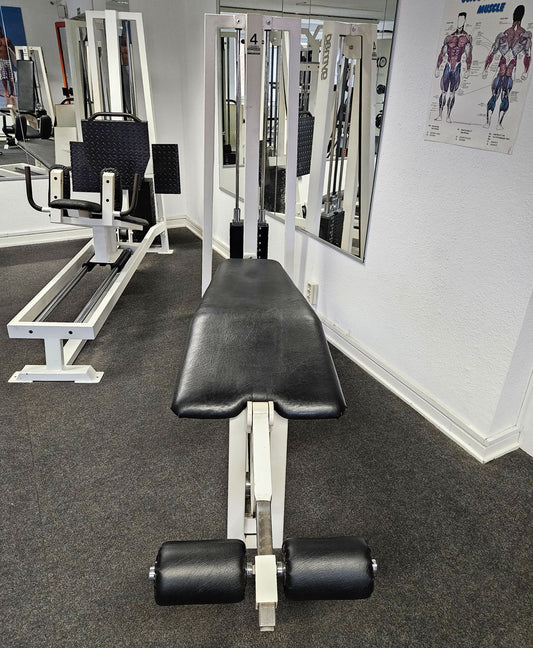 Bauchbank doppelt, schräg, Oldschool Bodybuilding, Rahmenfarbe Weiß, Polsterfarbe Schwarz, gebraucht