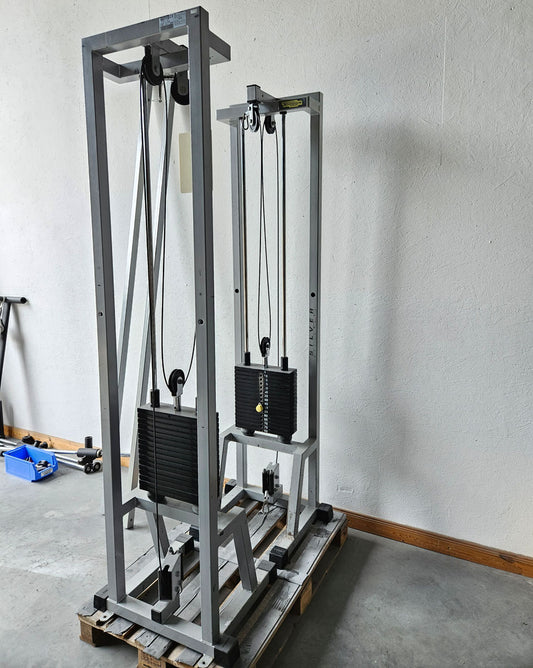 TechnoGym 2x Kabelzug, Cable Crossover, Seilzug von oben und unten, Silverline, Oldschool, Rahmenfarbe Silber, gebraucht - mit Gebrauchsspuren