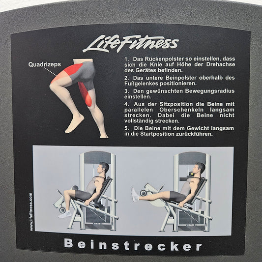 Life Fitness Beinstrecker sitzend, Leg Extension, Signature Serie, 145kg Gewichtsblock, Rahmenfarbe Silber, gebraucht - überholter Zustand