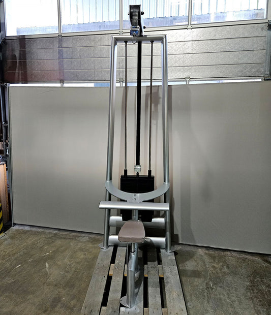 Gym80 Sygnum 4116 Rückenzugstation, Latzug von Oben, Lat Pulldown, 135kg Gewichtsblock, Farbe Silber, gebraucht - überholter Zustand
