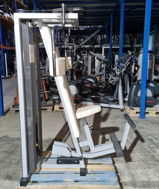 Dynamed Zugapparat Vertikal mit Sitz, Latzug von Oben, Pulldown, Stolzenberg, Rahmenfarbe Silber, gebraucht - überholter Zustand