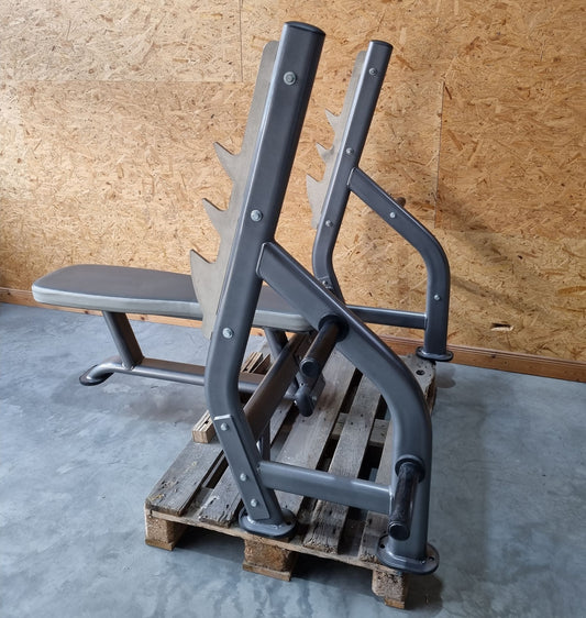 Olympia Flachdrückerbank, Olympic Flat Bench, Bankdrückbank Flach mit Ablagen, stabil, Rahmebfarbe Anthrazit, gebraucht - überholter Zustand