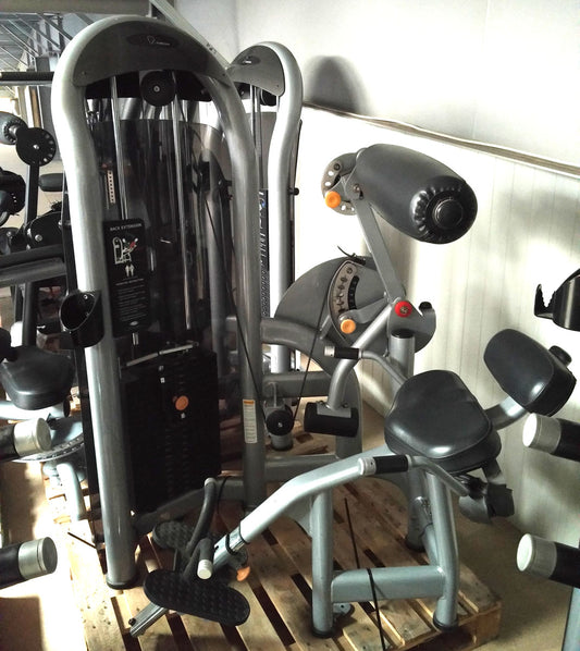 Life Fitness Optima Series Bauchmuskel-Maschine, Abdominal Crunch OSAB, Rahmenfarbe Silber, Polsterfarbe Orange, gebraucht - überholter Zustand