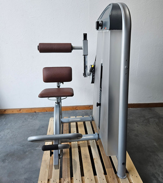 Proxowell bzw Proxomed Rückenflexion, Bauchmaschine, Rückenbeuger, Abdominal Crunch, 100kg Gewichtsblock, Compass bzw C-Well Serie, Rahmenfarbe Silber, gebraucht - überholter Zustand