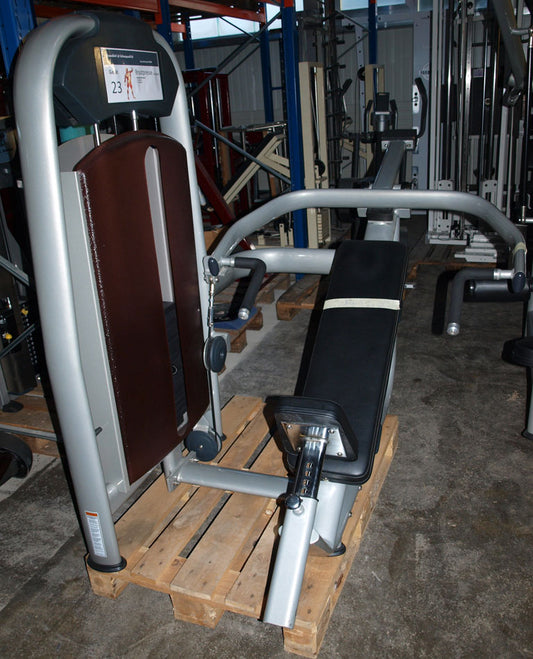 Precor Bankdrückmaschine mit Einstiegshilfe, Brustpresse, 105kg Gewichtsblock, Rahmenfarbe Silber, gebraucht - überholter Zustand