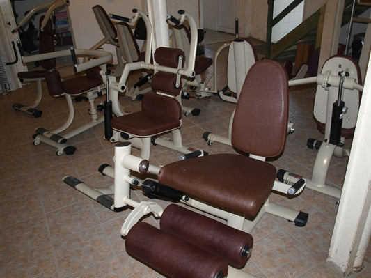 SDH Zirkel, 8 Kraftgeräte (Calory Coach) Farbe Silber, Polster Dunkelrot, gebraucht - Sonderpreis