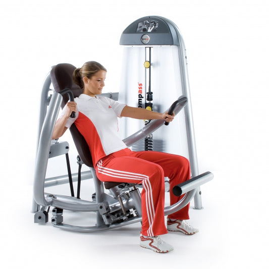 Proxowell bzw Proxomed Bankdrückmaschine, Brustpresse, Chestpress, 100kg Gewichtsblock, Compass bzw C-Well Serie, Rahmenfarbe Silber, gebraucht - überholter Zustand
