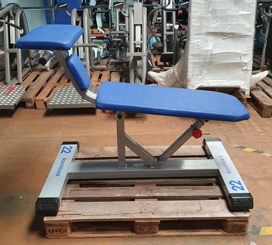 RMA Vorderer Rumpfheber, verstellbare Bauchbank, Abdominal Crunch Bench, Rahmenfarbe Silber-Grau, Polsterfarbe Blau, gebraucht - überholter Zustand