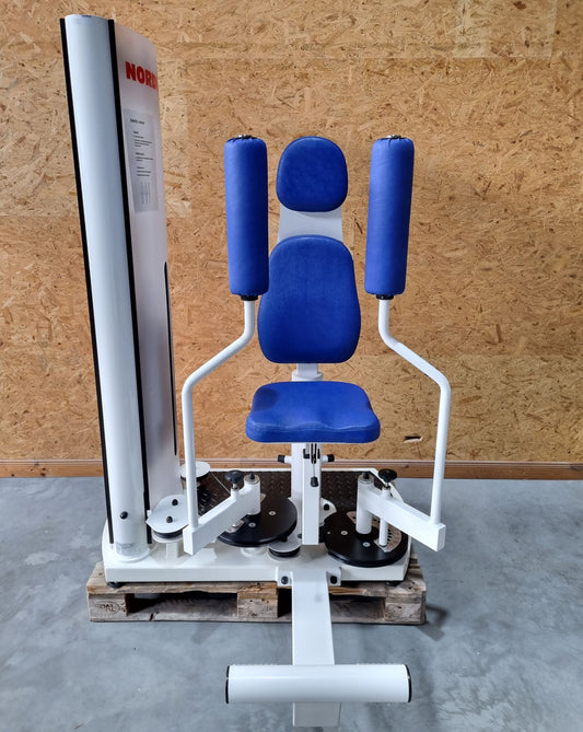 Pego Sport NordicLine Butterfly und Butterfly Reverse - 2 in 1 Kombimaschine, Butterfly - Press Back Kombi, Fly and Rear Delt, Rahmenfarbe Weiß, Polsterfarbe Blau, gebraucht - überholter Zustand