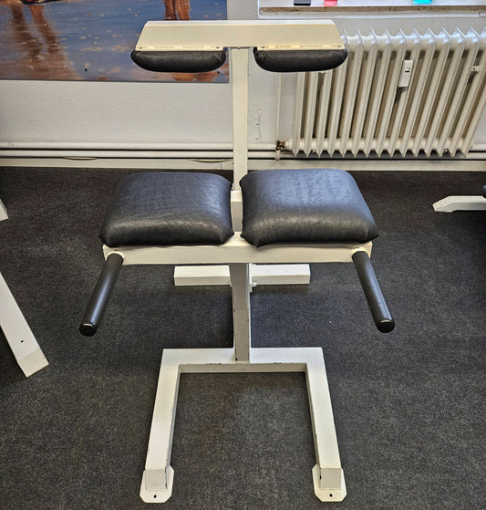 Rückenstreckerbank 90° Hyperextension verstellbar zum training der unteren Rückenmuskulatur, Oldschool Bodybuilding, Rahmenfarbe Weiß, gebraucht und geprüft mit Gebrauchsspuren