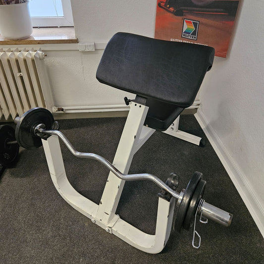 Scottcurl, Bizepsbank, SZ Curls, Rahmenfarbe Weiß, gebraucht mit Gebrauchsspuren
