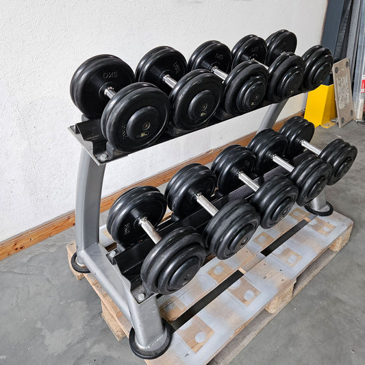 5 Paare Kurzhanteln aus Gummi, 22,5kg, 25kg, 27,5kg, 30kg und 32,5kg - Gummierte Kompakthanteln, inklusive Ständer, gebraucht - mit Gebrauchsspuren