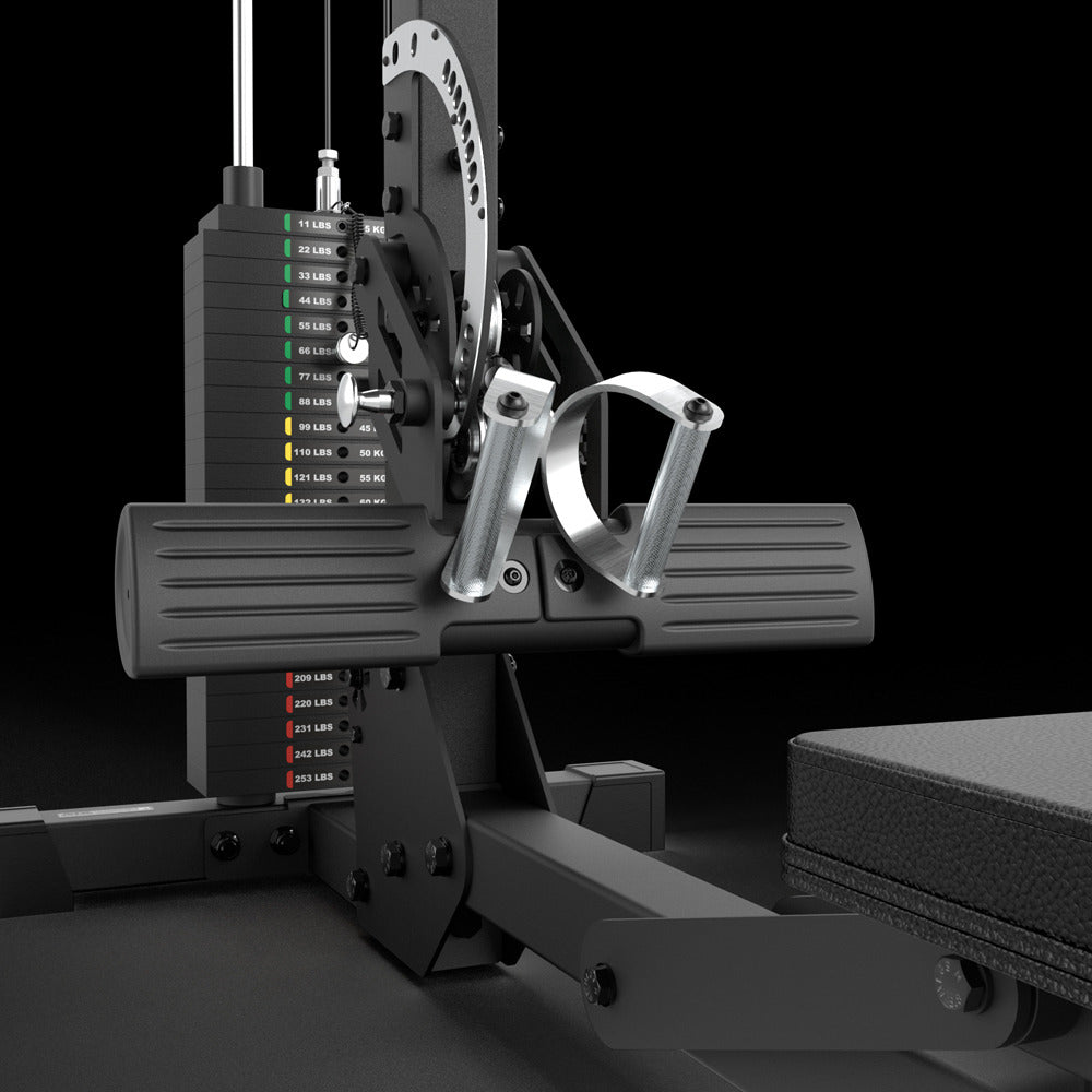 Dieses vielseitige Latzuggerät vereint klassische Latzugübungen von Oben als auch das sitzende Rudern in einer besonders durchdachten Konstruktion. Der Sitz ist ausklappbar und lässt sich in Sekunden zur langen, stabilen Ruderbank umfunktionieren. Dadurch wird aus der Latzugstation im Handumdrehen ein vollwertiger Sitzruderplatz mit optimaler Körperposition und großem Bewegungsradius. Die Beinstütze ist individuell auf drei unterschiedliche Zugausrichtungen einstellbar und sorgt in jeder Übungsvariante für sicheren Halt, stabile Körperfixierung und eine saubere Kraftübertragung. So lassen sich Latissimus, oberer Rücken und die gesamte Zugmuskulatur äußerst variantenreich und zielgerichtet trainieren. Die seidenweiche Lauffunktion garantiert einen gleichmäßigen, ruckfreien Bewegungsablauf, während die massive, standfeste Bauweise auch bei hohen Trainingsgewichten maximale Stabilität bietet.