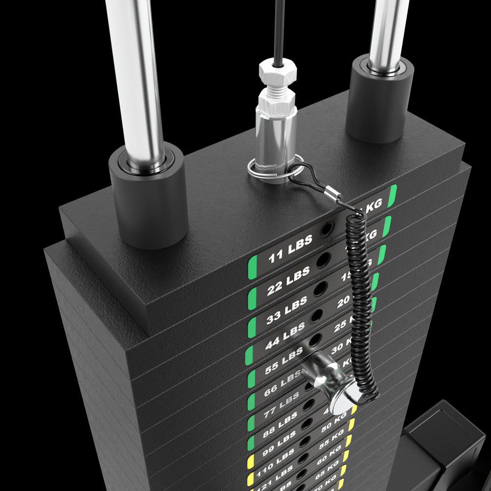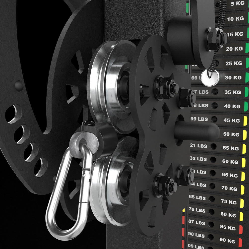 • Mit 115 kg Steckgewichte - Gewichtsabstufung 23 x 5 kg