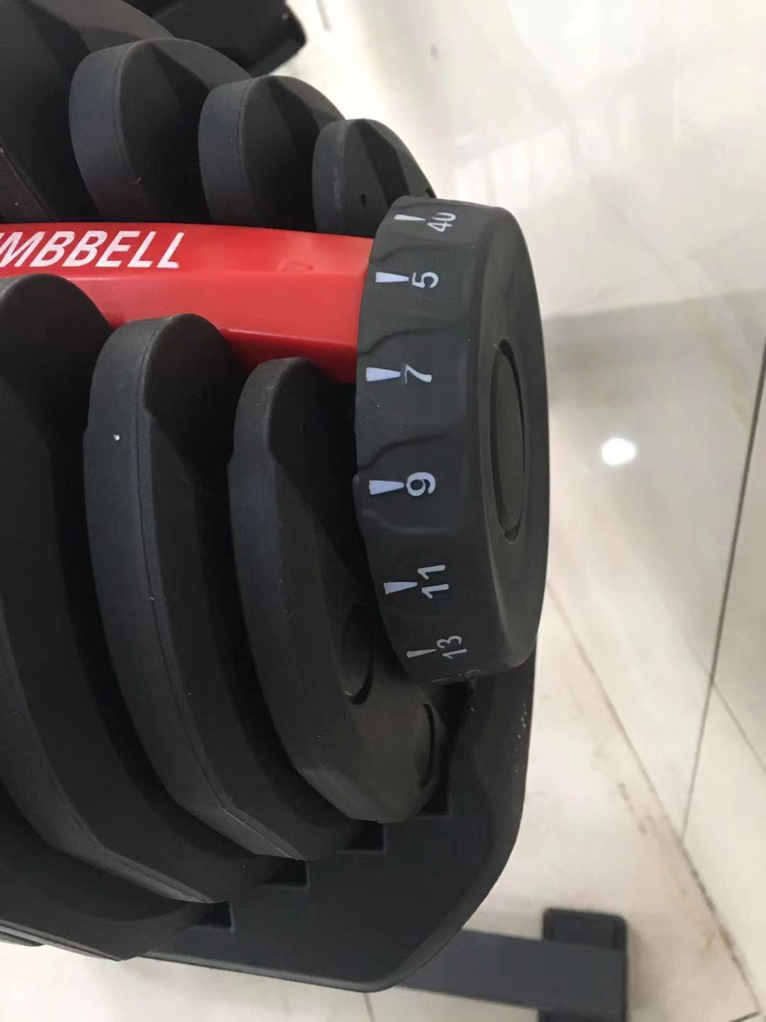 - Adjustable dumbbell pair from 2.5 to 24 kg in 15 levels including stand (division 15 levels: 2.5 / 3.5 / 4.5 / 5.5 / 6.5 / 8 / 9 / 10 / 11.5 / 13.5 / 16 / 18 / 20.5 / 22.5 / 24 kg