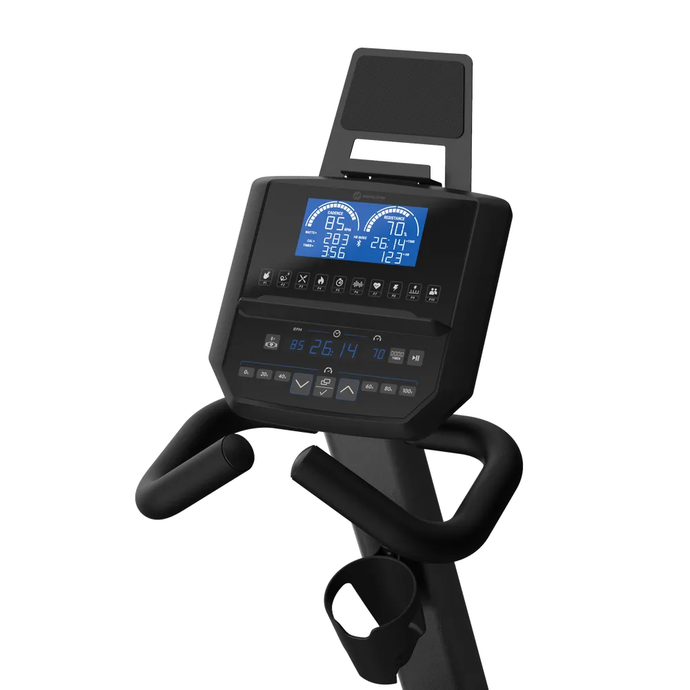 - Anzeigen: Zeit, Distanz, Geschwindigkeit, Kalorien, Herzfrequenz, Widerstand, RPM, Cardio Compass HR Anzeige, Watt