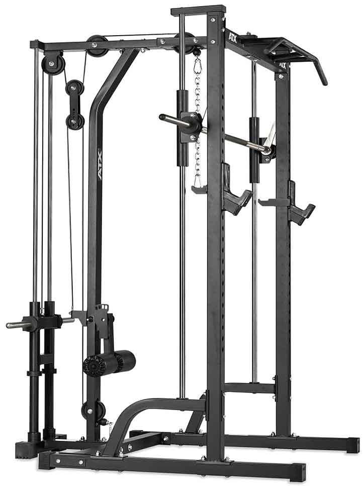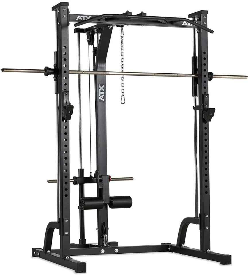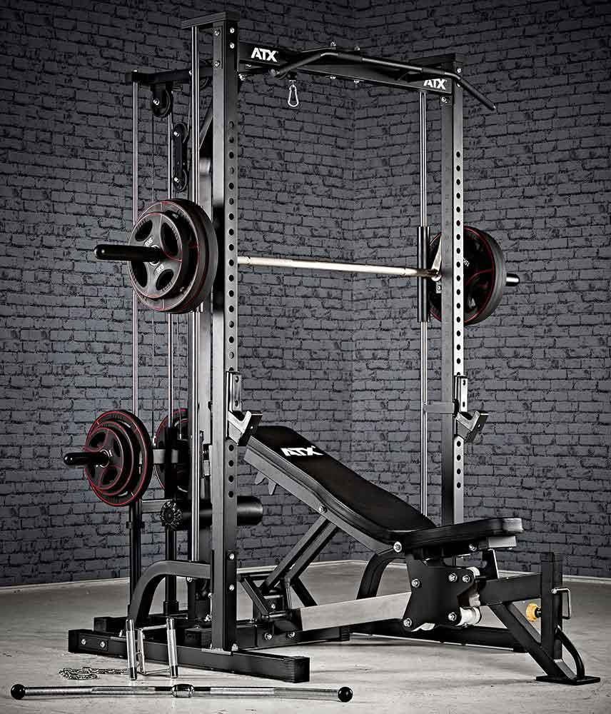 Schwer belastbare Multipresse mit Latzuganbau. Gleichermaßen geeignet für das sichere Training mit der geführten Langhantel wie auch für das freie Langhanteltraining. Dieses Rack-System bildet in Verbindung mit der ATX Multibank und einem Hantel-Set ein komplettes Home-Gym auf kleinstem Raum. Abwechslungsreiche Trainingsroutinen mit einer Vielzahl von Übungsvarianten sind problemlos realisierbar.