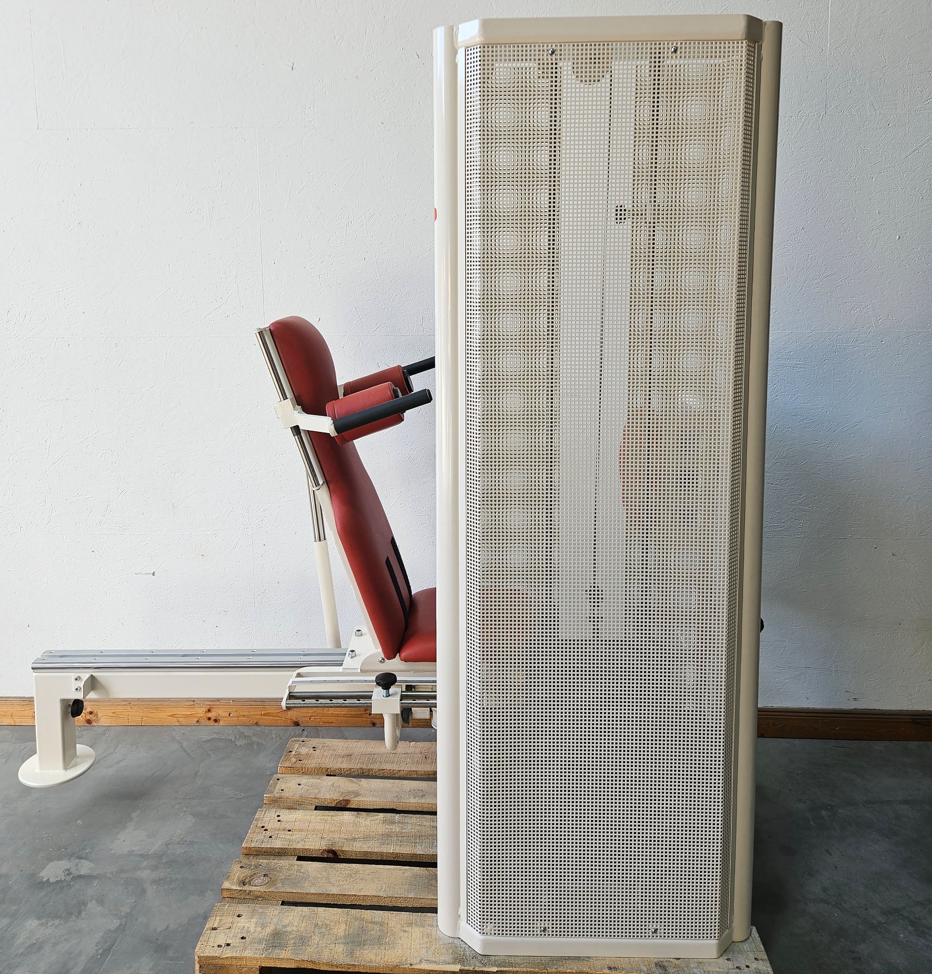 für Reha-Patienten geeignet, kann aber auch von starken Sportlern für ein effektives Training genutzt werden. Die Funktionsstemme ist mit einem großen 150kg Gewichtsblock in anfangs 5kg und dann in 10kg Schritten ausgerüstet. Soll bei bestimmten Patienten ein bestimmter Punkt bei der Übungsausführung nicht überschritten werden kann mit dem Bewegungsbegrenzer stufenlos die Bewegung gestoppt werden.