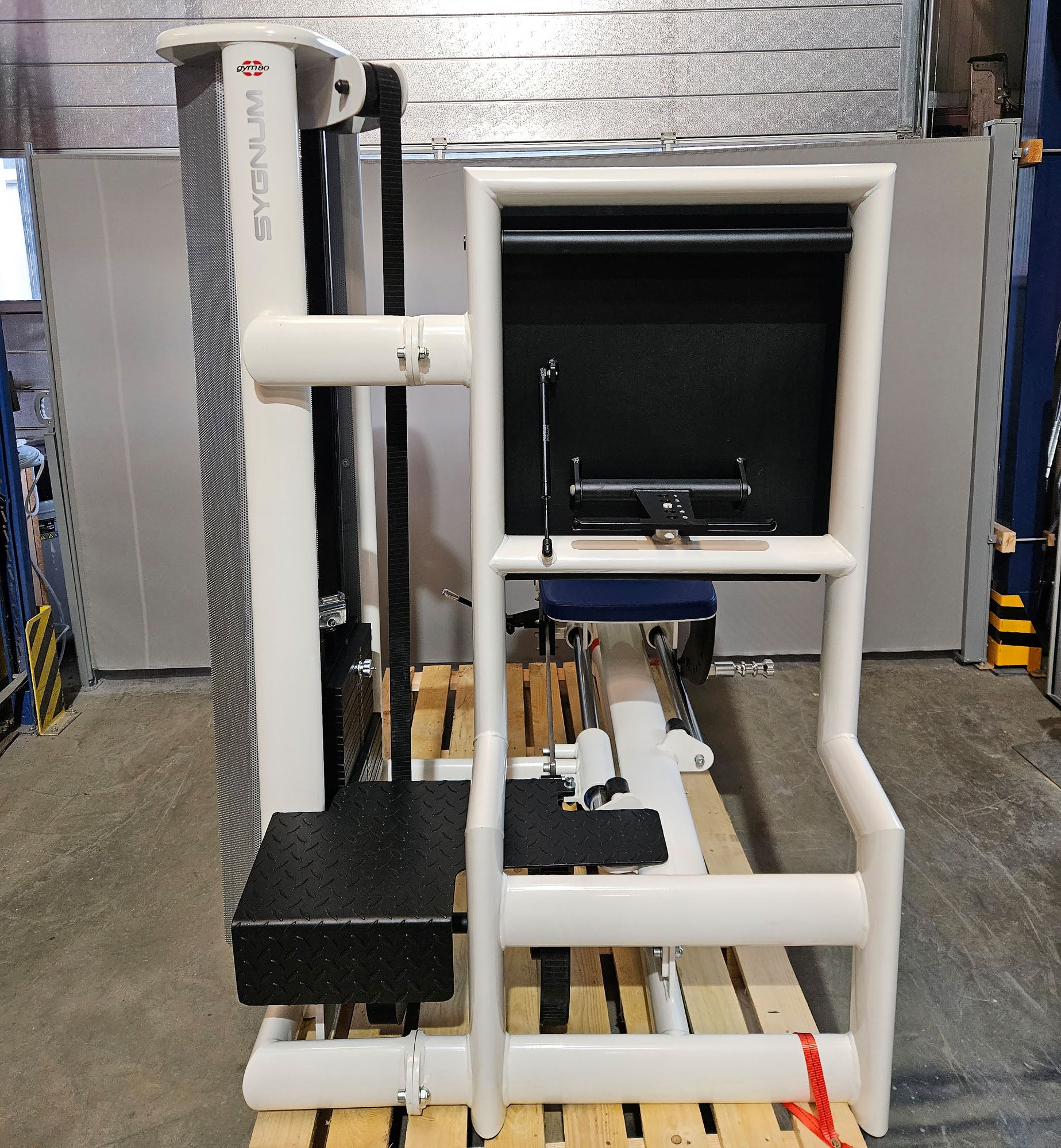 für Reha-Patienten geeignet, kann aber auch von starken Sportlern für ein effektives Training genutzt werden. Die Funktionsstemme ist mit einem großen 180kg Gewichtsblock in anfangs 5kg und dann in 10kg Schritten ausgerüstet.