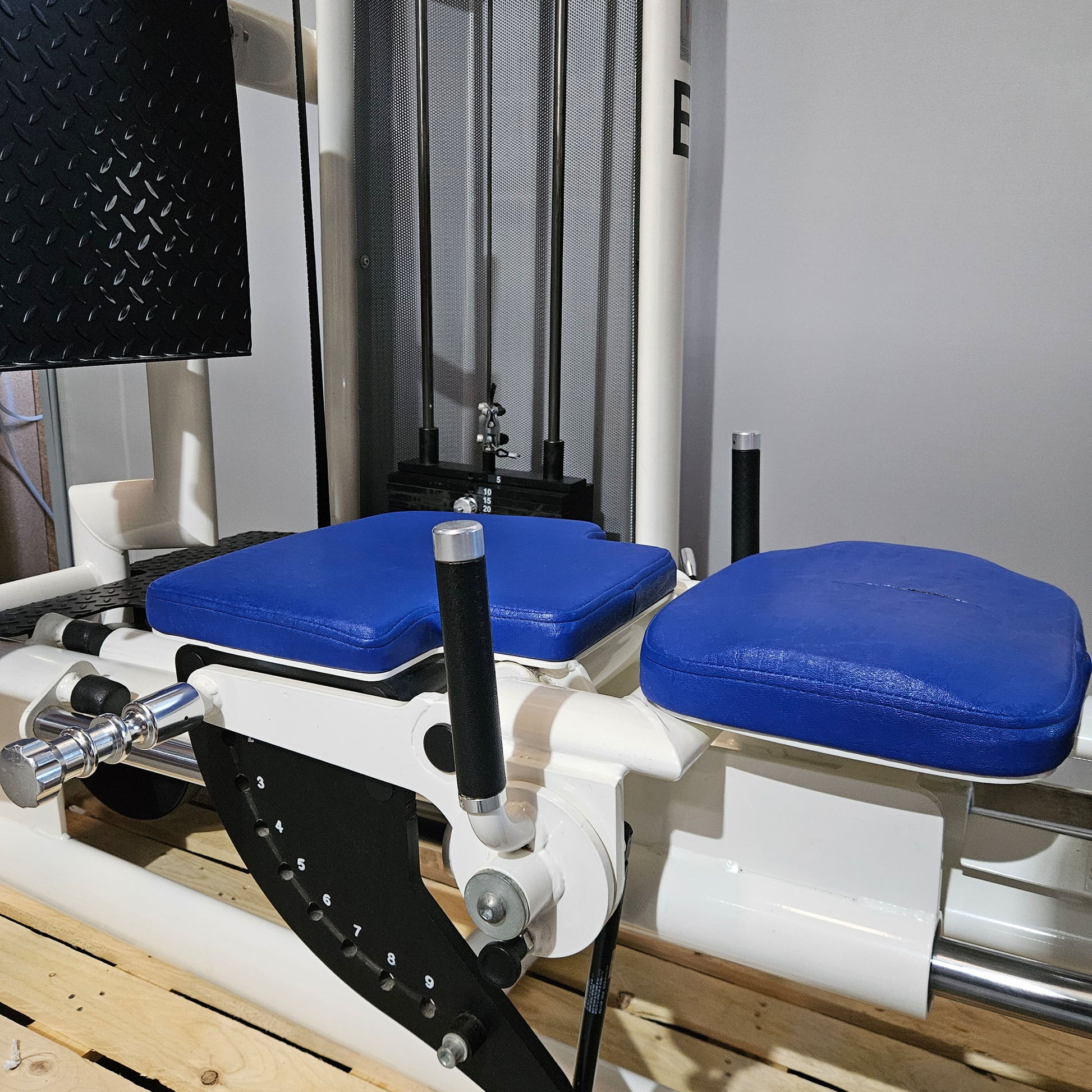 Gym80 Med80 3283 Funktionsstemme sitzend - liegend, 180kg Gewichtsblock, Beinpresse verstellbar, Farbe Weiß, gebraucht - überholter Zustand