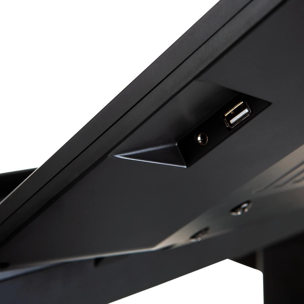 Der integrierte USB-Anschluss lädt Dein Smartphone oder Tablet während Deines Lauftrainings automatisch auf. Du spielst über Deinen USB-Stick Musik und Filme ab. Die integrierten Lautsprecher sorgen zusätzlich für ein akustisches Lauferlebnis.