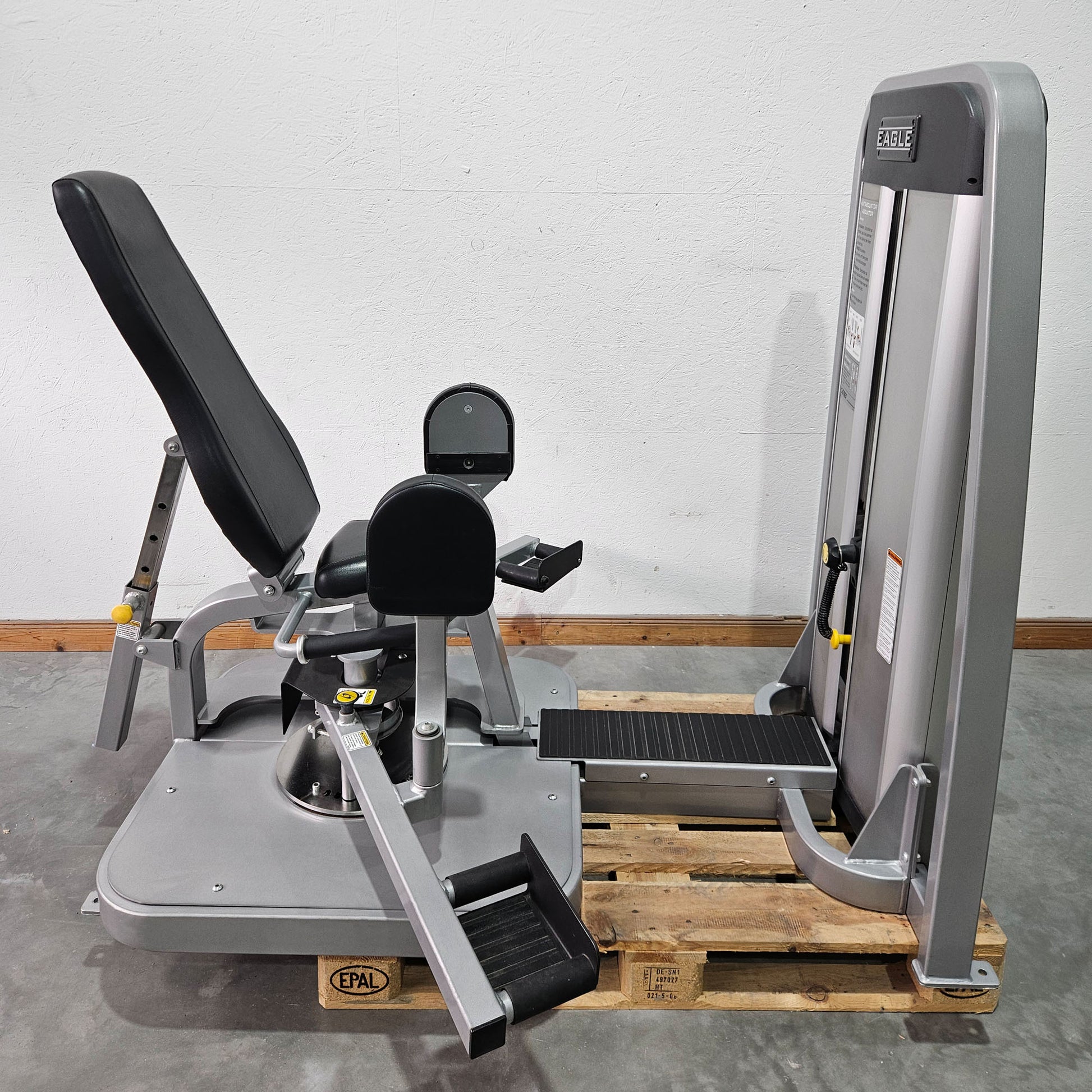 Sparen Sie Platz und Geld mit zwei Übungen in einem Gerät! Mit dieser Kombi Abduktoren-/Adduktoren Maschine von Cybex aus der Eagle Serie trainieren Sie effektiv die inneren und äußeren Oberschenkel in einer Maschine. Das Fitnessgerät ist mit einem großen Steckgewichtsblock mit 85,5kg ausgestattet. Trotzdem kann man in kleinen 2,25kg Stufen das Gewicht steigern und so ist das Sportgerät auch für ältere/schwächere Personen leicht nutzbar. Die Rückenlehne ist in 4 Stufen in der Neigung verstellbar und die Startposition der Übungsausführung kann in 9 Stufen eingestellt werden.