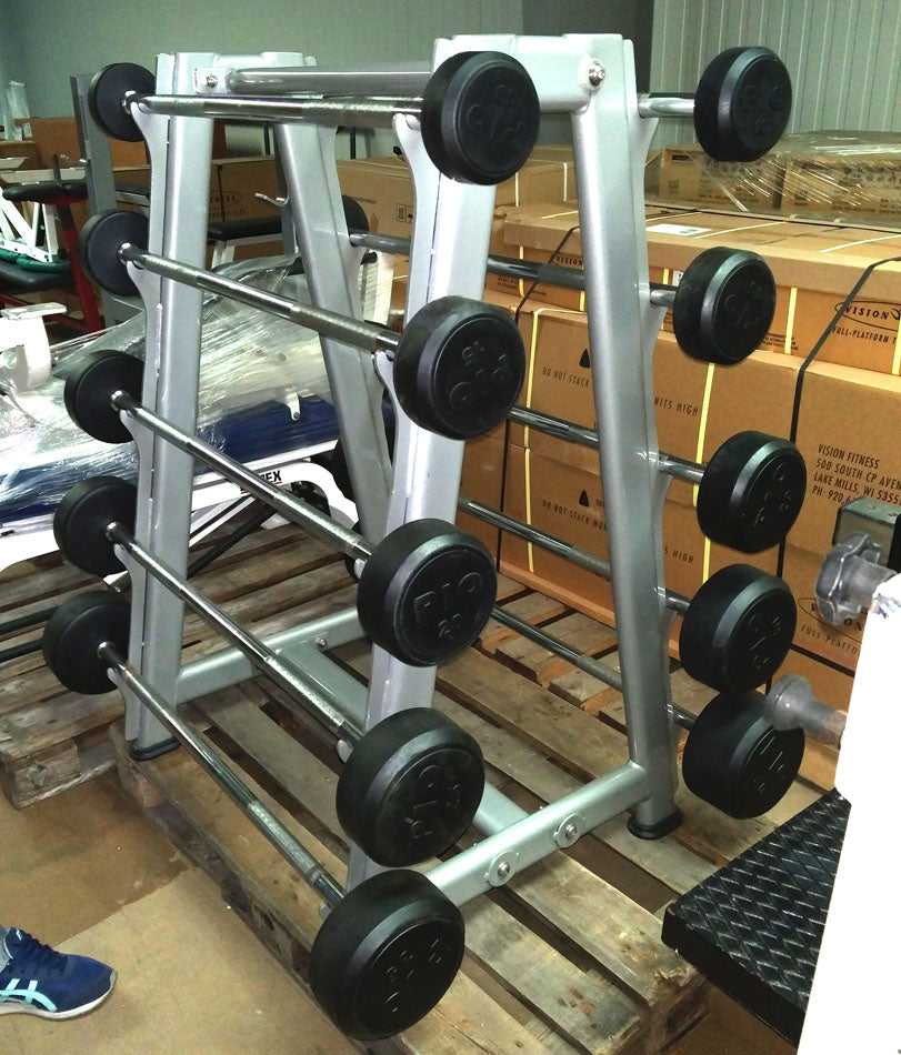 Langhantelset, bestehend aus 5 Paar Hanteln und Ablage