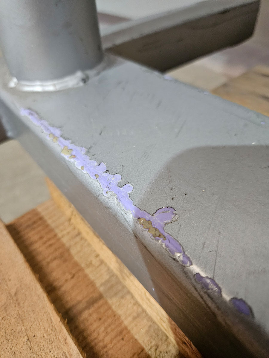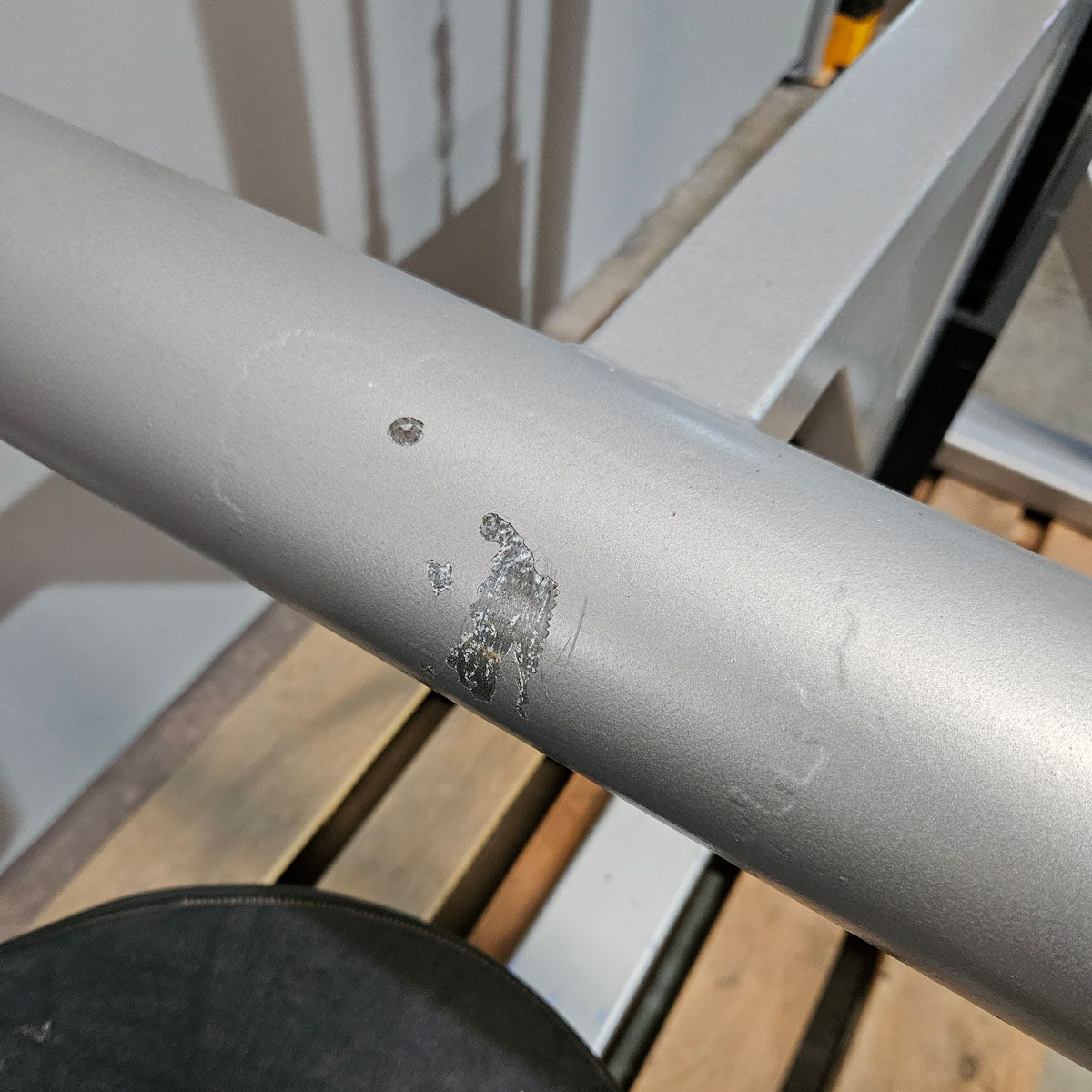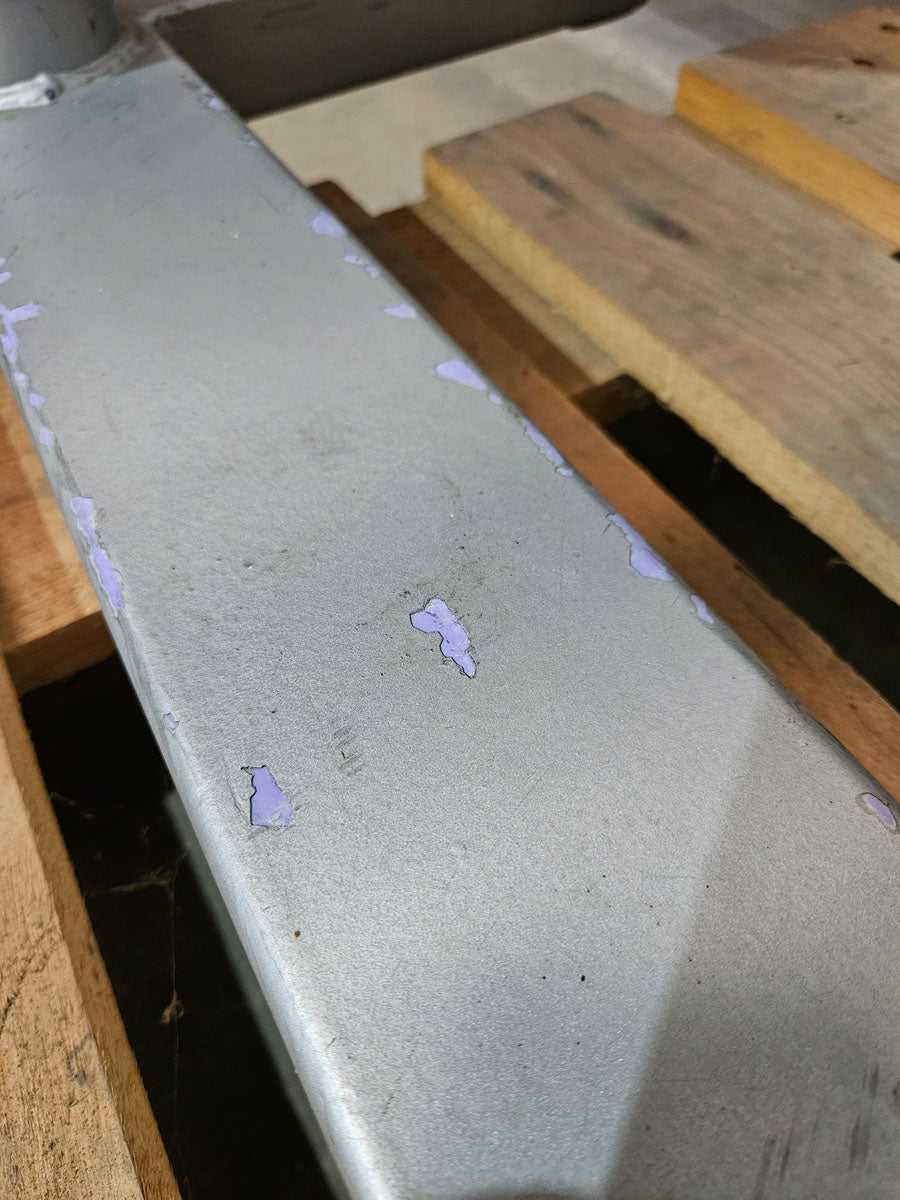Gestellfarbe: Silber - Das Gerät war mal Lila und wurde wohl schonmal vom Vorbesitzer überlackiert, dabei sind ein paar kleine Lacknasen entstanden
