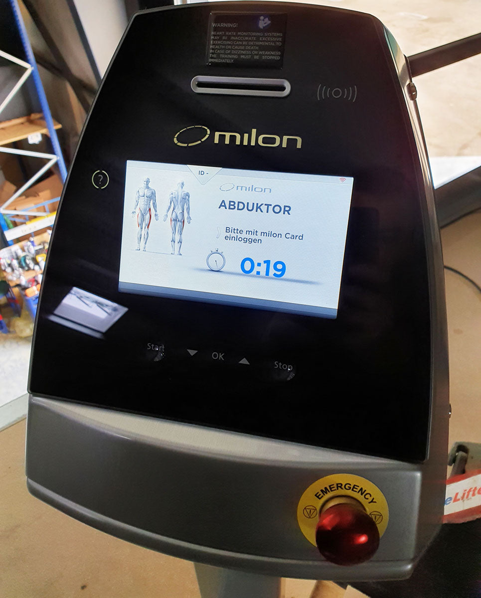 Mit dieser Abduktorenmaschine und der Adduktorenmaschine von Milon aus der Premium Serie können Sie isoliert und schonend die innere und äußere Oberschenkelmuskulatur trainieren. Wie man es von Milon gewohnt ist sind die Geräte vollständig vernetzt, mit einem großen LCD Display und RFID Reader ausgestattet und stellen sich automatisch auf die Kunden ein. Die Geräte sind vollständig überholt, die Lüfter auf der Platine in beiden Geräten wurden neu eingelötet (Kosten dafür bei Milon pro Lüfter ca. 1000€ netto!)