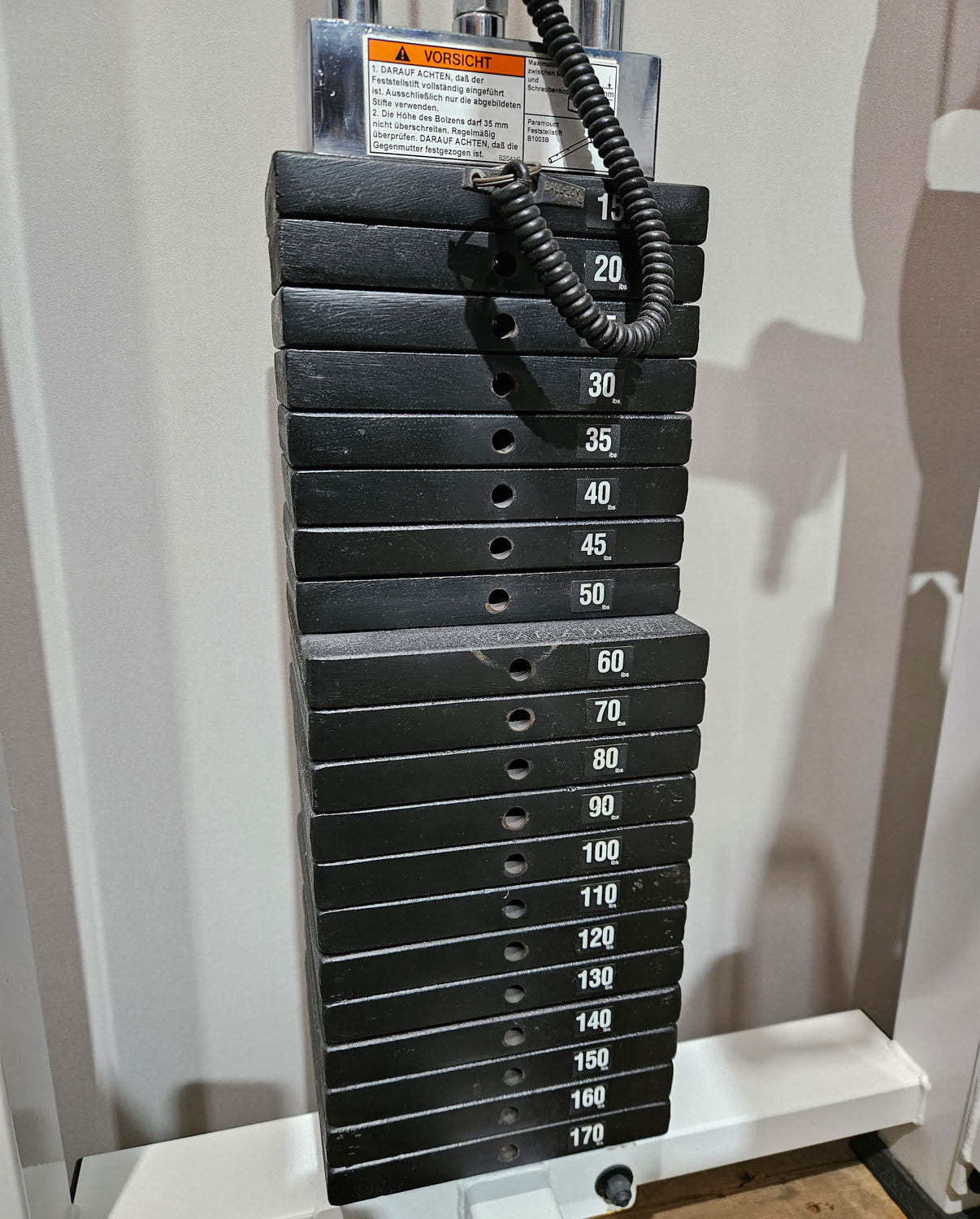 Mit dieser Shoulder Press Model A.R.T. 4400 von Paramount aus der Rotary Serie ( MADE IN USA / AMERIKA ) können Sie sicher und effektiv die Schultermuskeln und teilweise Brustmuskeln trainieren. Der Sitz des Schulterpresse Fitnessgeräts ist in 5 Stufen in der Höhe verstellbar und die Griffposition ist in der Länge in 9 Stufen verstellbar. zusätzlich sind die Griffe drehbar kugelgelagert. Dadurch kann die Overhead Press individuell an die Körpergröße angepasst werden. Das Kraftgerät ist mit einem Steckgewichtsblock mit 77kg ( 170 lbs ) in 4,5kg ( 10 lbs) Stufen ausgestattet. Sollten Sie auf der Suche nach weiteren Kraft sowie Cardiogeräten oder ganzen Geräteparks für ein Fitnessstudio sein, oder noch nicht das passende Geräte gefunden haben, schreiben Sie uns gerne eine Email an Info@DankSport.de Wir haben immer über 2500 Fitnessgeräte von allen großen Herstellern auf Lager und diverse Geräte im Vorlauf die noch nicht auf unser Webseite veröffentlicht sind. Lieferung FREI HAUS bis Bordsteinkante innerhalb Deutschlands per Spedition.