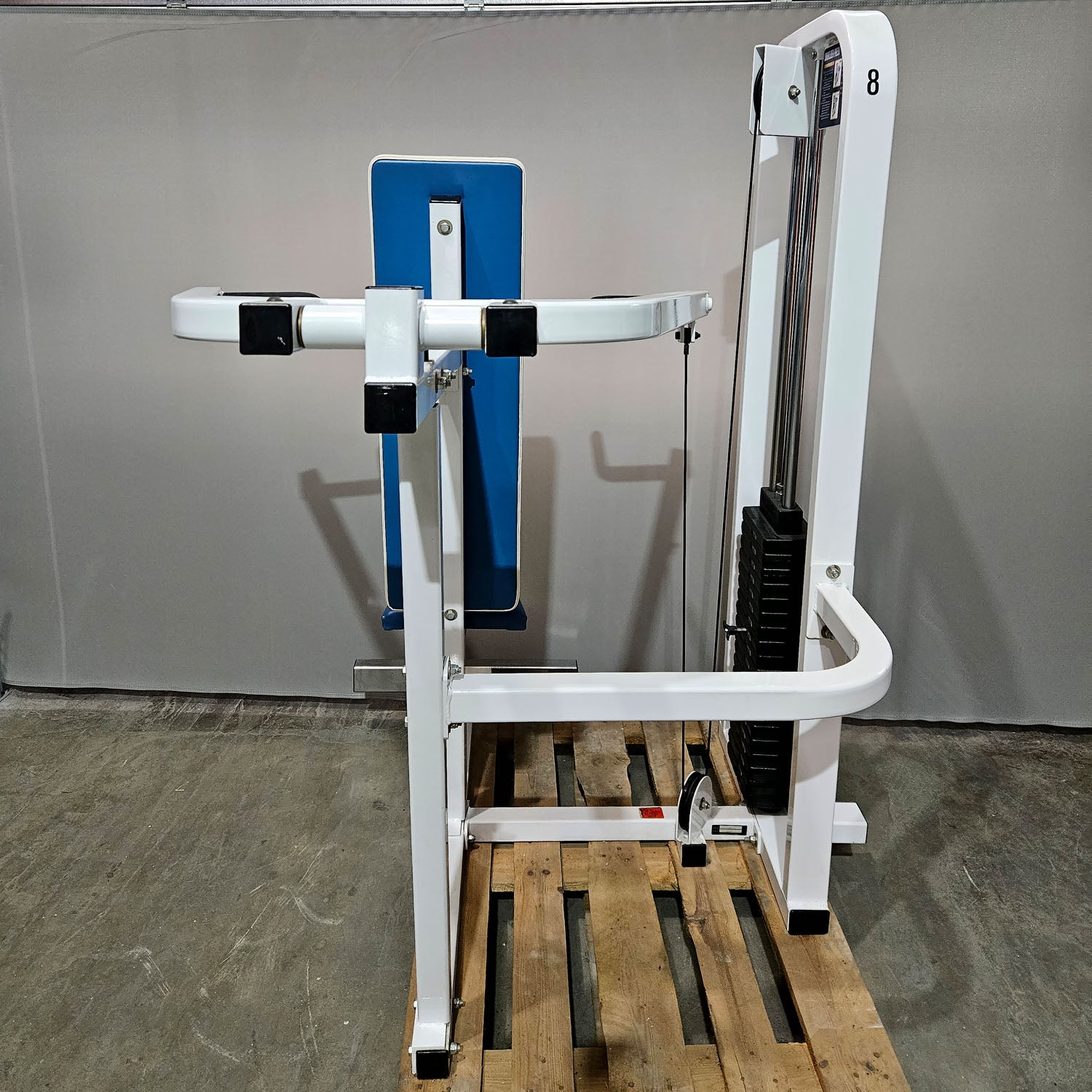Mit dieser Shoulder Press Model 1000 von Paramount ( MADE IN USA / AMERIKA ) können Sie sicher und effektiv die Schultermuskeln trainieren. Durch die zwei verschiedenen Griffmöglichkeiten kann man variabel an der Schulterpresse trainieren. Der Sitz ist in 8 Stufen in der Höhe verstellbar, dadurch kann die Schulterpresse individuell an die Körpergröße angepasst werden. Das Fitnessgerät ist mit einem großen Steckgewichtsblock mit 90kg ( 200 lbs ) in 4,5kg ( 10 lbs) Stufen ausgestattet. Sollten Sie auf der Suche nach weiteren Kraft sowie Cardiogeräten oder ganzen Geräteparks für ein Fitnessstudio sein, oder noch nicht das passende Geräte gefunden haben, schreiben Sie uns gerne eine Email an Info@DankSport.de Wir haben immer über 2500 Fitnessgeräte von allen großen Herstellern auf Lager und diverse Geräte im Vorlauf die noch nicht auf unser Webseite veröffentlicht sind.