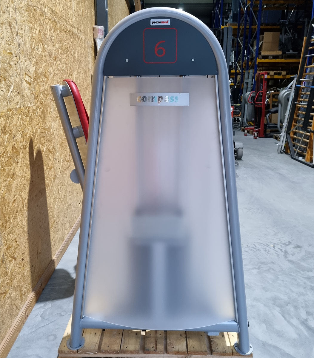 Mit dieser Abduktoren - und Adduktorenmaschine Kombi aus der Compass 530 Serie von dem deutschen Hersteller Proxomed trainieren Sie isoliert und schonend die innere und äußere Oberschenkelmuskulatur. Die Startpositionen ist in 6 Stufen einstellbar, dadurch kann das 2 in 1 Kombigerät individuell an den gewünschten Bewegungsradius eingestellt werden. Die Fuß- und Beinstützen können in der Länge in 13 Stufen verstellt werden und sind an der Fußaufnahme extra mit Antirutsch Material beklebt. Die vertikalen Polster für die Oberschenkel können je nach Übung nach Außen oder Innen gedreht werden. Die Rückenlehne lässt sich in 7 Stufen von Aufrecht bis fast liegend einstellen, unterstützt durch eine Gasdruckfeder. Das Lordosekissen ist herrausnehmbar und in der Höhe verschiebbar. So lässt sich das Gerät perfekt an jede Körpergröße anpassen um immer eine optimale Biomechanik während der Übung zu gewährleisten. Die Abduktoren - und Adduktorenmaschine ist mit einem großen Steckgewichtsblock mit 80kg ausgestattet, und zusätzlich kann ein Zusatzgewicht "Feinabstufung" von 1-4kg aktiviert werden. Somit kann in 1kg Schritten das Gewicht gesteigert werden! Somit ist das Gerät perfekt für Reha-Patienten geeignet, kann aber auch von stärkeren Sportlern für ein effektives Training genutzt werden. Zusätzlich ist das Gerät perfekt für Physio, Reha und Medizin Patienten abgestimmt da es sich um ein Medizinprodukt nach 93/42/EWG Klasse I (MPG und MDD Medizinproduktgesetz) handelt.
