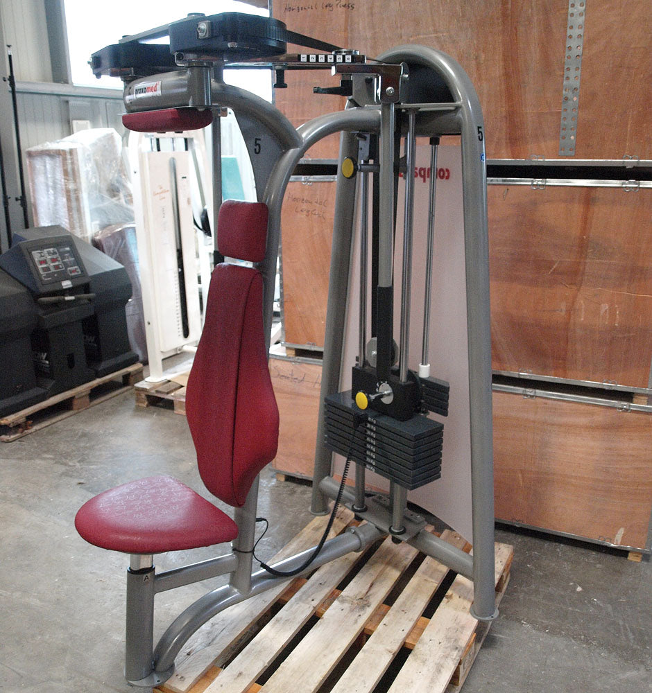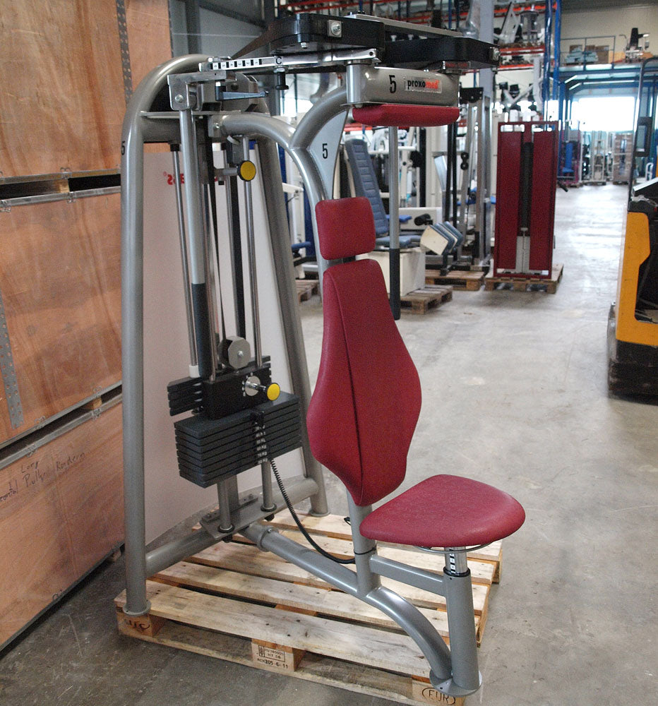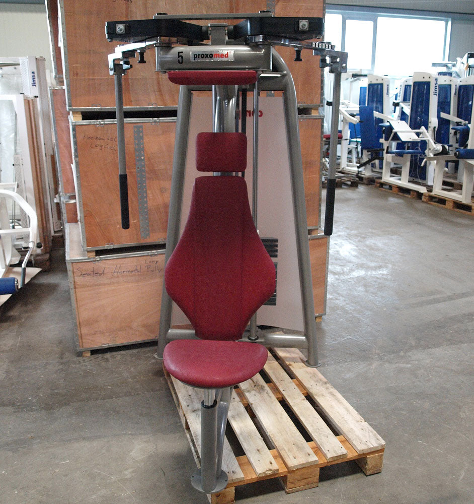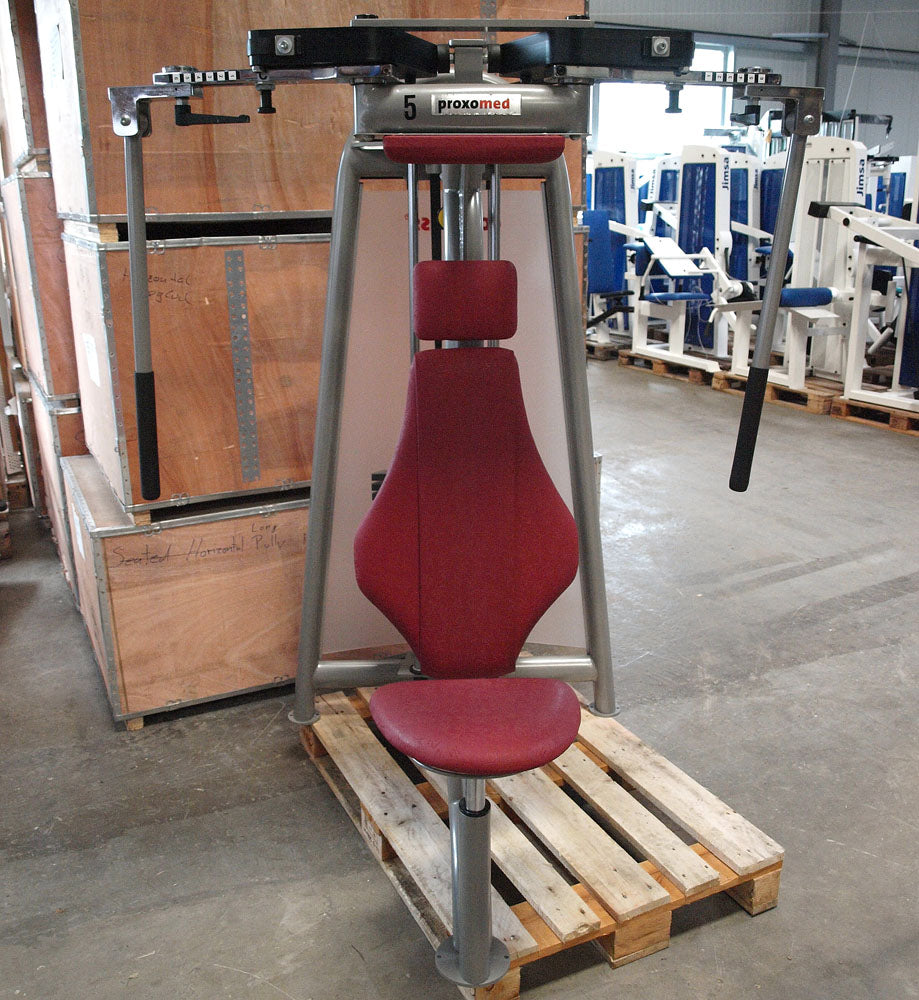 Mit diesem Butterfly Reverse Kraftgerät vom deutschen Hersteller Proxomed aus der Compass 530 Serie trainieren Sie effektiv aber auch schonend die oberen und seitlichen Rückenmuskeln und teile der Schultermuskulatur. Die offizielle Herstellerbezeichnung von dieser Butterfly Kraftmaschine lautet Bruststabilisator. Das Fitnessgerät ist produziert in Deutschland mit TÜV und trägt das CE Zeichen. Das Gerät bietet eine vielzahl von Einstellungsmöglichkeiten um die Maschine perfekt auf Sie auszurichten. Großer 80kg Gewichtsblock mit 10kg Abstufung ist vorhanden und zusätzlich kann ein Zusatzgewicht von 2-8kg aktiviert werden. Somit kann in 2kg Schritten das Gewicht gesteigern werden! Das Sportgerät eignet sich auch perfekt für Reha und Medizin Patienten da es sich um ein Medizinprodukt nach 93/42/EWG Klasse I (MPG und MDD Medizinproduktgesetz) handelt. Die Sitzhöhe lässt sich hydraulisch einstellen um das Gerät an jede Körpergröße anzupassen. Die Startposition der Bewegung kann in 10 Schritten eingestellt werden, außerdem passen sich die Gelenkarme immer an die Geometrie vom Körper und der perfekten Bewegung an! Zusätzlich ist die Maschine mit den aufpreispflichtigen Optionen: Feinabstufung 4 x 2 kg und der Stufenlose Bewegungsbegrenzung ausgestattet.