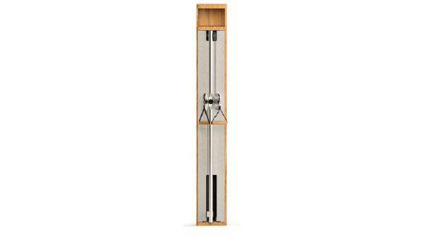 Das Seilzug-Modul beinhaltet einen integrierten SlimBeam und bietet die Möglichkeit mit Gewichten zu trainieren. Die Front ist mit einer Edelstahl Optik beschichtet und lässt sich zur Wartung einfach öffnen. Die sichtbaren Holzelemente bestehen aus Echtholzfurnier. Durch die Führungsstange und dem daran befestigten Butterfly hat das Modul eine Tiefe von ca. 50 cm.