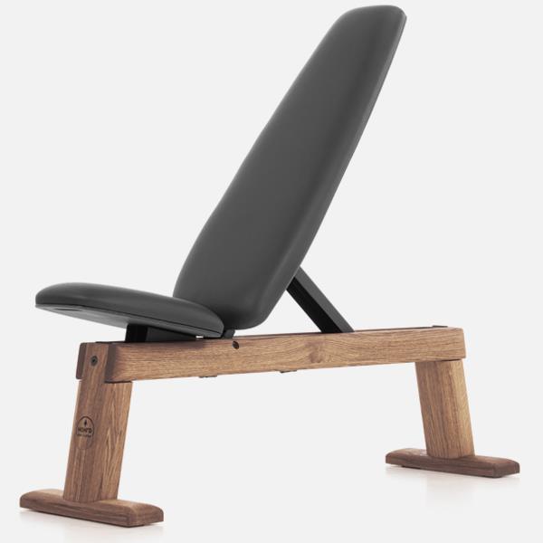 - Das Gestell der WeightBench Hantelbank wird aus hochwertigem, strapazierfähigem Massivholz gefertigt. Sitz- und Liegeflächen werden wahlweise in Echt- oder Kunstleder handverarbeitet für eine elegante Design-Ästhetik.