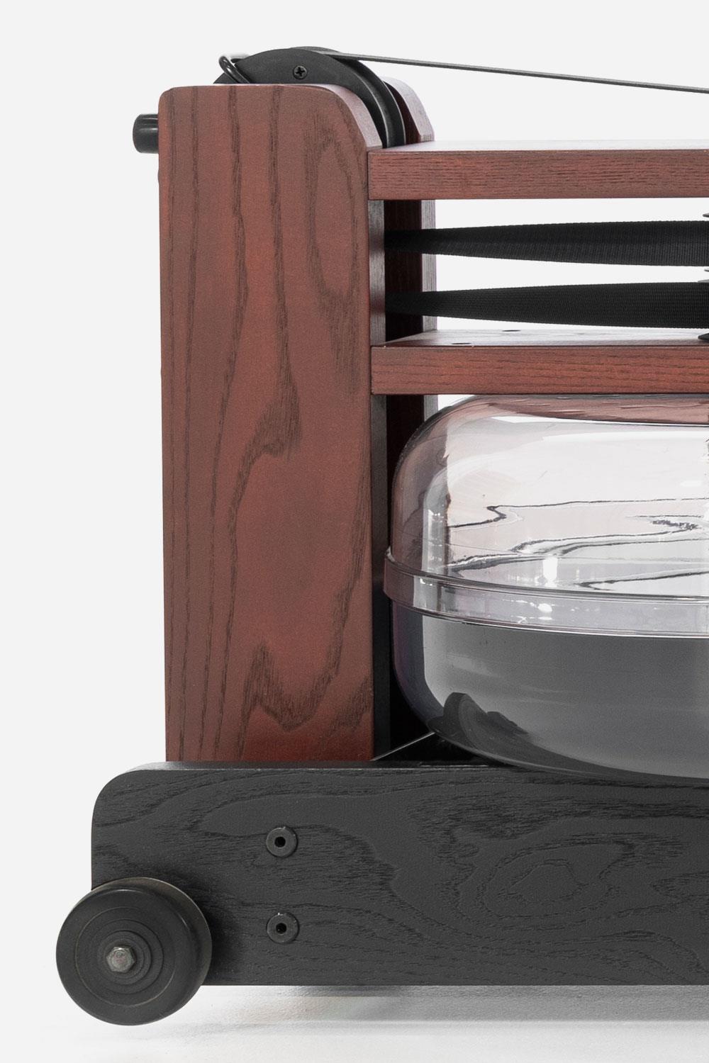 Original WaterRower Rudergerät aus massivem, schwarz und rosé-farben gebeiztem Eschenholz. Das Herzstück des WaterRower ist der Wassertank aus stabilem Polycarbonat mit dem ergonomisch geformten Wasserpaddel. Es wird eine maximale Wassermitnahme ermöglicht und der gleichmäßige, ruckelfreie Widerstand wird erzeugt. Das Training mit Wasserwiderstand ist absolut gelenkschonend und gleichzeitig extrem effektiv. Holz absorbiert Geräusche und Vibrationen und unterstützt den reibungslosen, leisen Betrieb des WaterRowers.