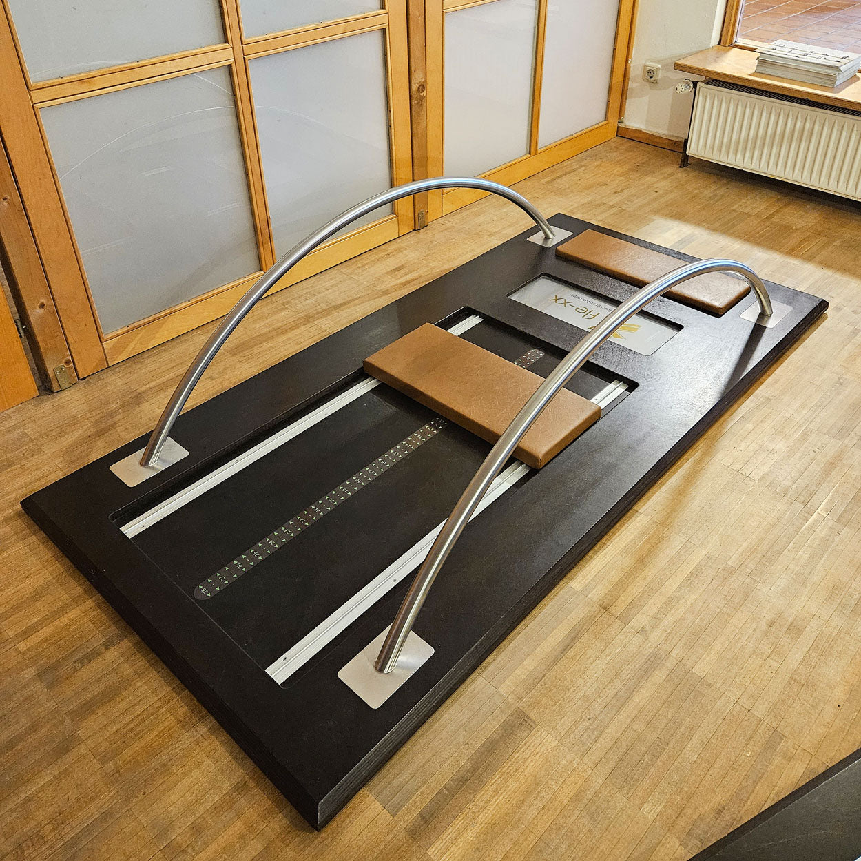 Fle-xx das Rückgrat Konzept ist die führende Firma für Beweglichkeitszirkel in Fitnessstudios. Durch den Strechzirkel haben Ihre Studiomitglieder die Möglichkeit nach einem intensiven Training alle Muskeln, Sehnen, Bänder und Gelenke zu dehnen bzw stretchen und dadurch zu entspannen. Durch die schöne Holzoptik schaffen Sie ein tolles Ambiente, bieten Ihren Mitgliedern einen Mehrwert und setzen sich weiter von der Discounterstudio Konkurrenz ab! Der Beweglichkeitszirkel stammt aus einem kleinen Inhabergeführten Studio und ist in einem guten gebrauchten Zustand, gerne können Sie den Holz-Zirkel auch vor Ort angucken und testen. Sichern Sich sich diesen schönen Dehnzirkel jetzt zum Sonderpreis!